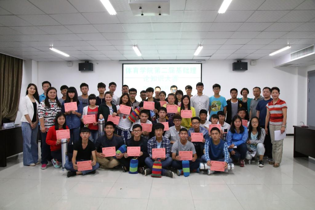 本次理论知识竞赛由理论教研室杨勤主任主持,刘小平副主任负责题库监控,马治云、严武、刘辉、肖琴、翁艳及高培军担任评委及摄像工作。竞赛内容包含《运动解剖学》、《运动生理学》、《体育保健学》、《学校体育学》、《体育统计学》、《运动生物力学》和《民族传统体育》等16门课程的基本理论知识和基本技能。竞赛项目包括团体必答简答题、个人必答题和团体必答选择题。参赛单位有2012级本科、2013级本专科和2014级本专科共8个班。经过激烈的角逐,A1311班获得一等奖;A1411班和A1412班获得二等奖;A1312、A1421和B1311班获得三等奖;其他参赛单位均获鼓励奖。