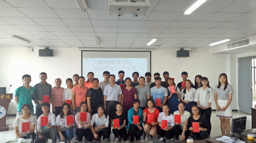 此次比赛达到了“以赛促学”的目的,既调动了全体学生认真学习专业知识的积极性,又加深了体育理论知识的内化程度,帮助学生明确训练的目标及行为价值,形成“理论武装训练,训练检验理论”教学理念,营造出良好自觉的专业理论知识学习的氛围。