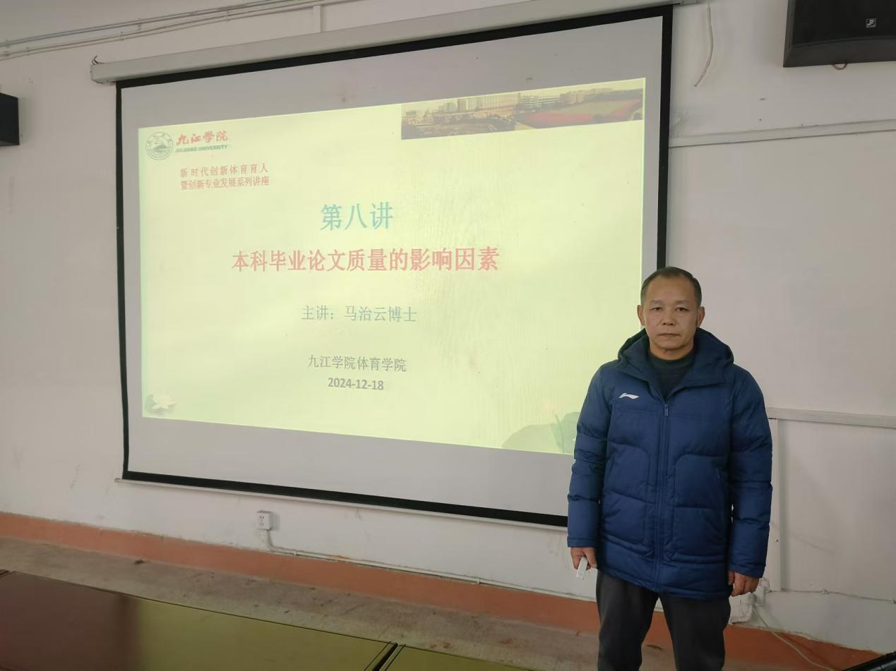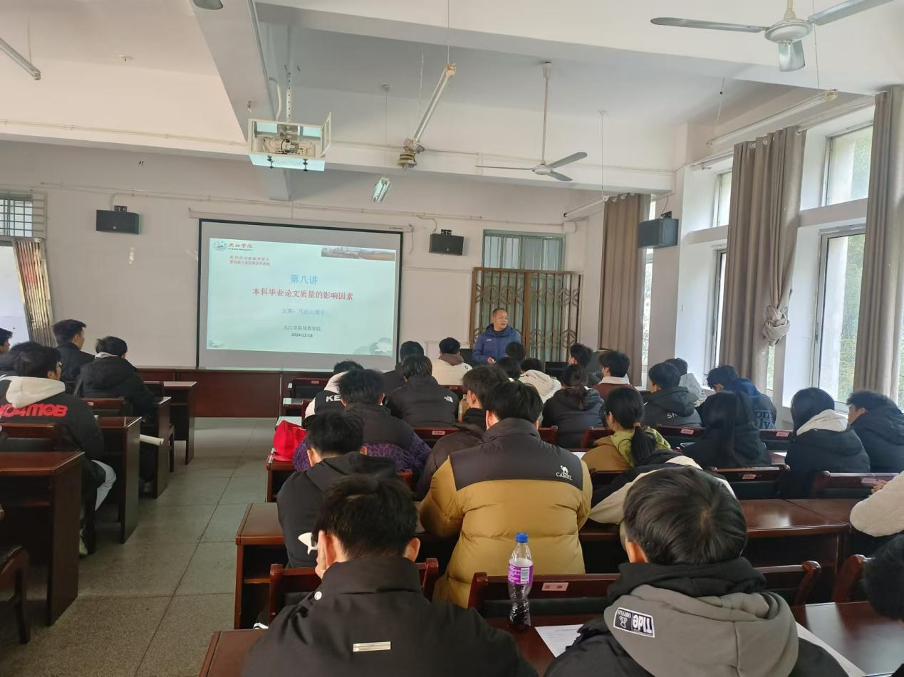 2024年12月18日,新时代创新体育育人暨创新专业发展系列讲座第八讲开讲了。本次邀请2026世界杯官网教师马治云博士为做题为《本科毕业论文质量的影响因素》的讲座。该讲座内容是马老师主持的江西省教育科学“十四五”规划2023年度课题《本科毕业论文质量促进的系统动力学建模与仿真研究》的系列研究成果之一 。