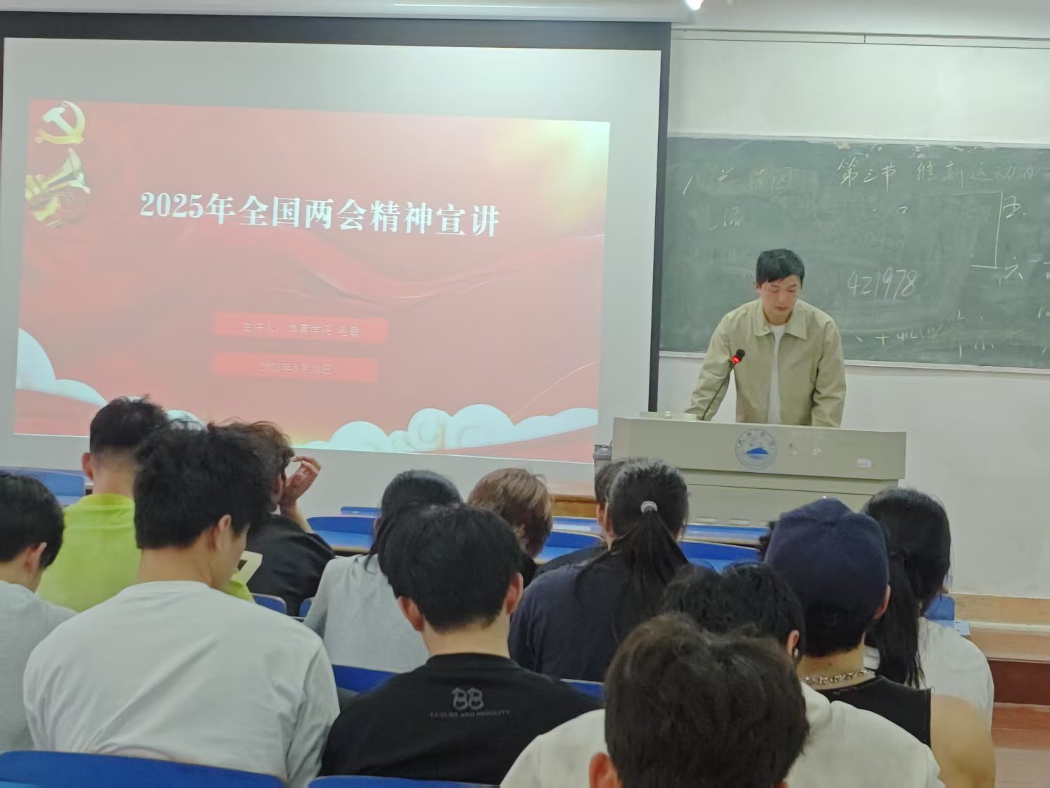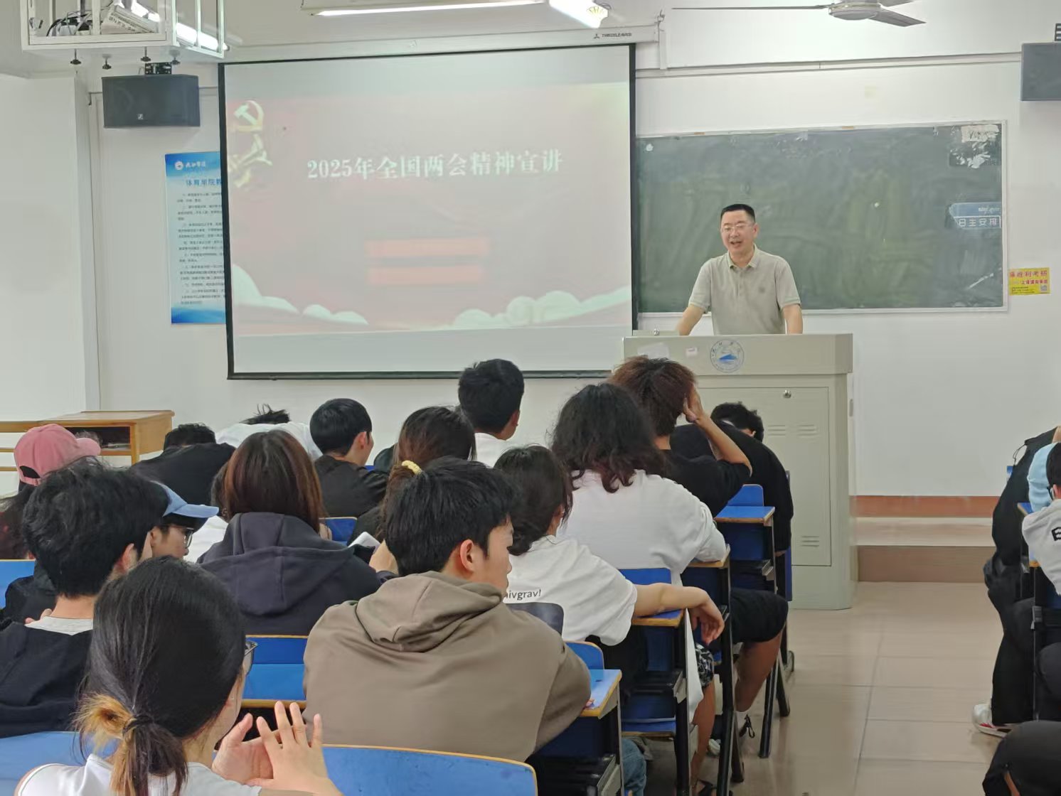 3月26日下午,2026世界杯官网领导班子深入课堂,宣讲2025年全国两会精神,引导青年学子深刻领会、准确把握两会精神实质,切实增强大学生的政治责任感和历史使命感。