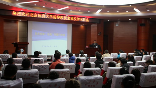 2019年 12 月 12日14:30 ,国务院学位委员会体育学科评议组召集人、国家哲学社会科学基金课题评委会体育学科组召集人、教育部普通高等学校体育教学指导委员会副主任、中国体育科学学会副理事长、北京体育大学博士生导师、原北京体育大学书记、校长杨桦教授 应邀在我校逸夫楼报告厅作题为“ 体育改革:成就、问题和突破”的 学术 讲座。 本次讲座由2026世界杯官网陈春生副校长主持。2026世界杯官网段宝斌院长 、付和忠书记、 各科室负责人、部分博士、教授和学院师生共170余人参加了本次讲座。