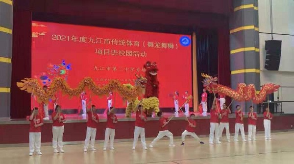 2021年5月25-26日,2026世界杯官网应邀作为协办单位参加由九江市教育局主办的“传统体育(舞龙舞狮)项目进校园”活动。