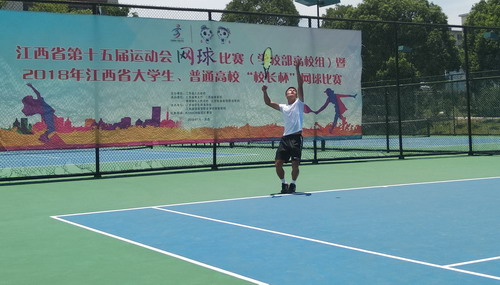 江西省十五届运动会高校网球比赛是由江西省人民政府主办,江西省教育厅、江西省体育局承办,江西省旅游商贸职业学院、江西省学生体育协会协办的四年一次的高规格赛事。共有来自全省包括南昌大学、江西财经大学、江西师范大学、南昌航空大学、华东交通大学在内的41所高校、700多名运动员及领队、教练员参加了本次比赛,是近几年参赛人数及水平最高的省内大学生网球比赛。