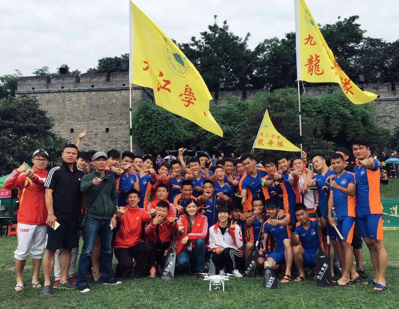 龙舟队是我校的传统特色运动队,学校领导以及学院领导都给予很大的支持与帮助,不断改善训练条件和训练待遇,为龙舟队的训练、比赛提供良好的后勤保障。成绩的取得离不开领导的关心,也离不开全体队员、教练员的艰辛付出。在教练员周海浪、贺静、王向棋的带领下,队员们坚持全年训练,特别是水上训练,他们克服高温、雨水天气,坚持每天下水训练,动感的鼓声、整齐的划桨、激情的呐喊,已经成为南门湖上一道美丽的风景线。