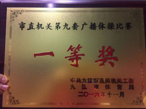 11月9日上午8:30-12:00,由中共九江市直属机关工委主办的第一届“市直机关第九套广播体操比赛”在九江市体育中心综合馆如期举行,我校教工代表队不负众望,斩获冠军。