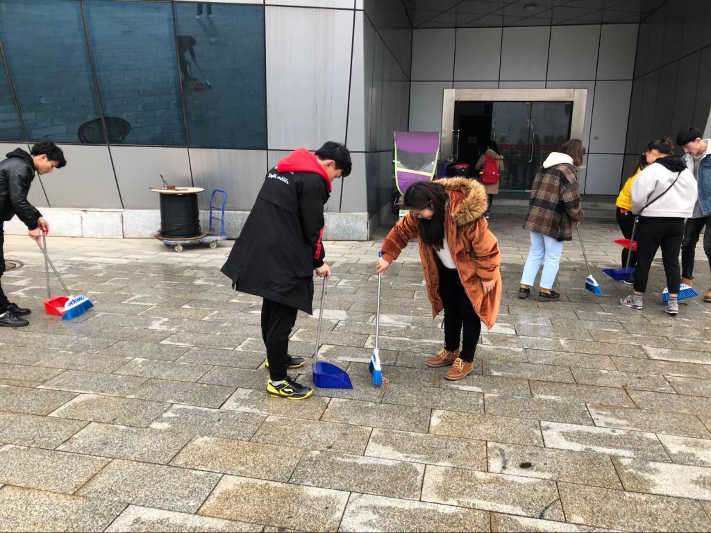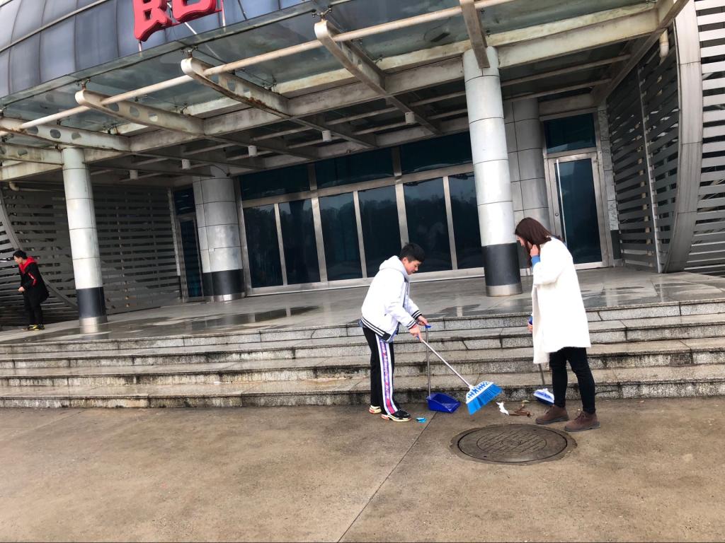3月12日下午,志愿者们带着劳动工具来到综合楼大厅集合,经过简单分组,志愿者们便各自去往其分配地。有的打扫大厅,有的清扫教室,有的清理小广告。为了保证效率,志愿者们顾不上交谈,纷纷用手中的工具清理地面上的垃圾。在各组分工明确、积极配合下,活动完美结束。