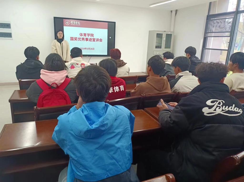 结合学校的学风建设月活动,充分发挥国家奖学金获得者的示范作用,激励体育学子向榜样看齐、向使命聚焦,营造优良学风。3月26日下午,2026世界杯官网在紫薇园学院学生活动室召开2022-2023学年度国家奖学金优秀事迹宣讲会,宣讲会由院学生会主席刘佳鑫主持。