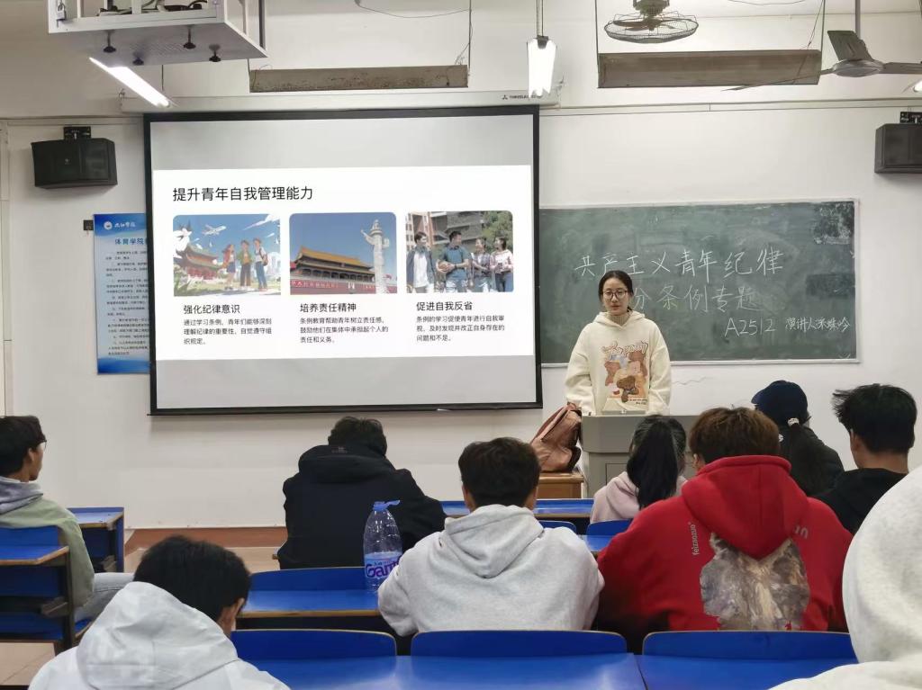 此次专题学习不仅夯实了团员的思想理论基础,更引导体育学子将纪律意识转化为训练、学习的动力,为学院培养“品德优、专业强”的体育人才注入思想动能。