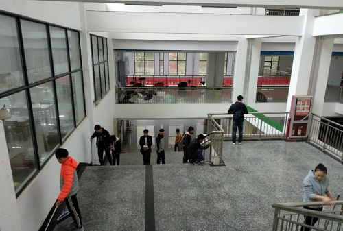 在毛敏老师的带领下,大家积极踊跃地投入到劳动中去,对八里湖校区道路、食堂和综合楼进行了全面彻底地清扫,大家分工合作,配合默契,热情细致地对楼道、门框、走廊、教室以及学生食堂等进行清洁,发扬了不怕脏、不怕苦、不怕累的精神。