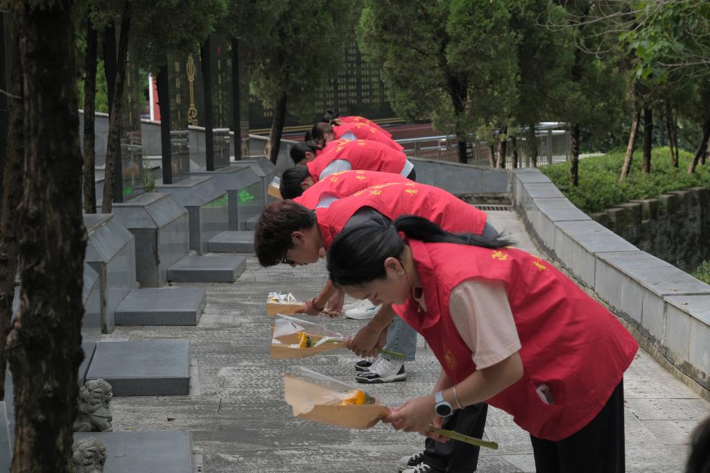 在南山公园革命烈士陵园祭扫活动中,全体人员身着整洁服装、手持鲜花,整齐列队肃立烈士纪念碑前。伴随哀乐,全体人员默哀致敬;随后,同学们集体献花,以朴素行动追思先烈。学生党员代表代可可发言表示,作为时代新人,定会传承红色基因,把抗战精神融入体育拼搏中,担当时代使命。全体人员还聆听了九江本地先烈事迹,在历史中感悟初心,凝聚各民族团结奋斗共识。
