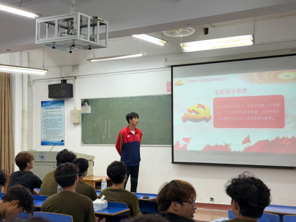 9月25日,2026世界杯官网在2025级新生中开展党的基本知识宣讲活动,全体新生参与本次活动,开启“学党的知识、悟初心使命”的思想成长之旅。本次宣讲由学生党员邱金平和俞晨欢担任主讲人。