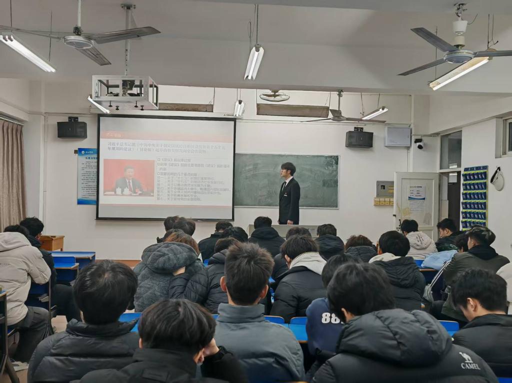 宣讲过程中,两位同学围绕文件明确的宣讲重点,系统阐释“十五五”时期发展目标、战略任务,既立足国家大局解读中国式现代化、新质生产力等核心内涵,也贴合体育专业青年实际:从“十四五” 体育事业的发展突破,谈到“十五五”体育强国建设对青年体育人的要求;用校园体育赛事组织的案例,诠释“以人民为中心”在青年服务中的实践;以运动员拼搏故事呼应“社会文明程度提升”的目标。为增强感染力,宣讲员还设置互动问答环节,围绕“体育专业青年如何在‘十五五’体育事业中践行全会精神”“青年如何以‘实干’诠释‘两个维护’”等问题交流,现场氛围热烈。