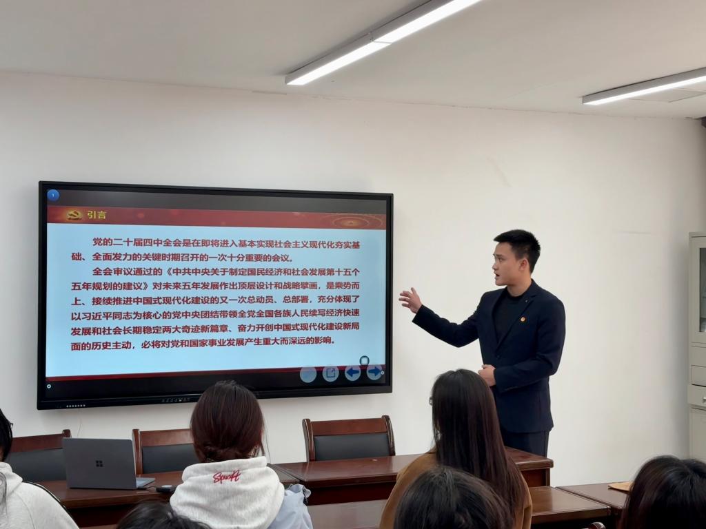 宣讲筹备阶段,两位宣讲员严格对标文件中“讲清楚核心内容” 的要求,深入研读全会公报、《中共中央关于制定国民经济和社会发展第十五个五年规划的建议》等材料,结合权威解读打磨课件,既梳理“十四五” 时期我国发展取得的重大成就,也明确 “十五五” 在社会主义现代化进程中的承启地位,同时融入 “两个确立” 的决定性意义、“四个意识”“四个自信” 等政治要点,确保内容精准对标文件要求。