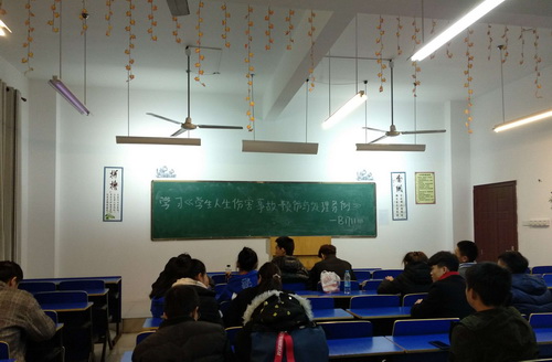 各班班主任结合全国发生的学生伤害事故,对《条例》进行了解读,告诫同学们加强安全意识,做好预防处理准备。同学们积极发言,对事故伤害的预防提出自己的看法。