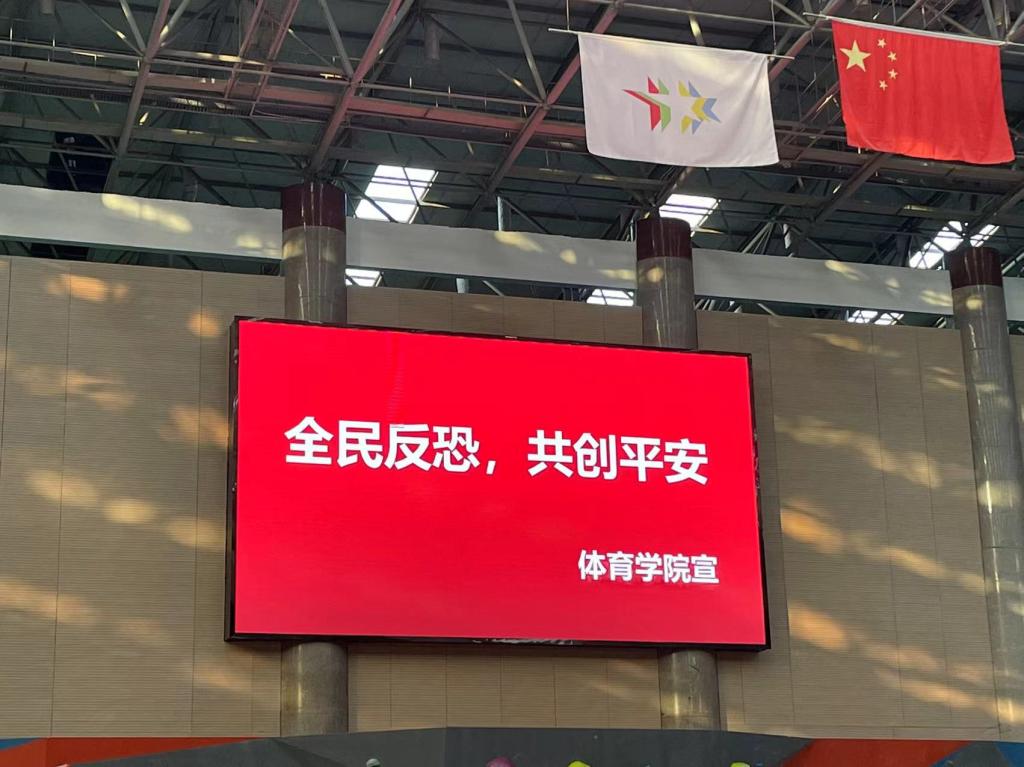 2026世界杯官网通过在学生宿舍布置宣传展板、场馆电子显示屏以及通过班级微信群转发法治微视频《全民反恐,共建和谐社会》等法治宣传,进一步提升师生知法、懂法、守法意识和能力。