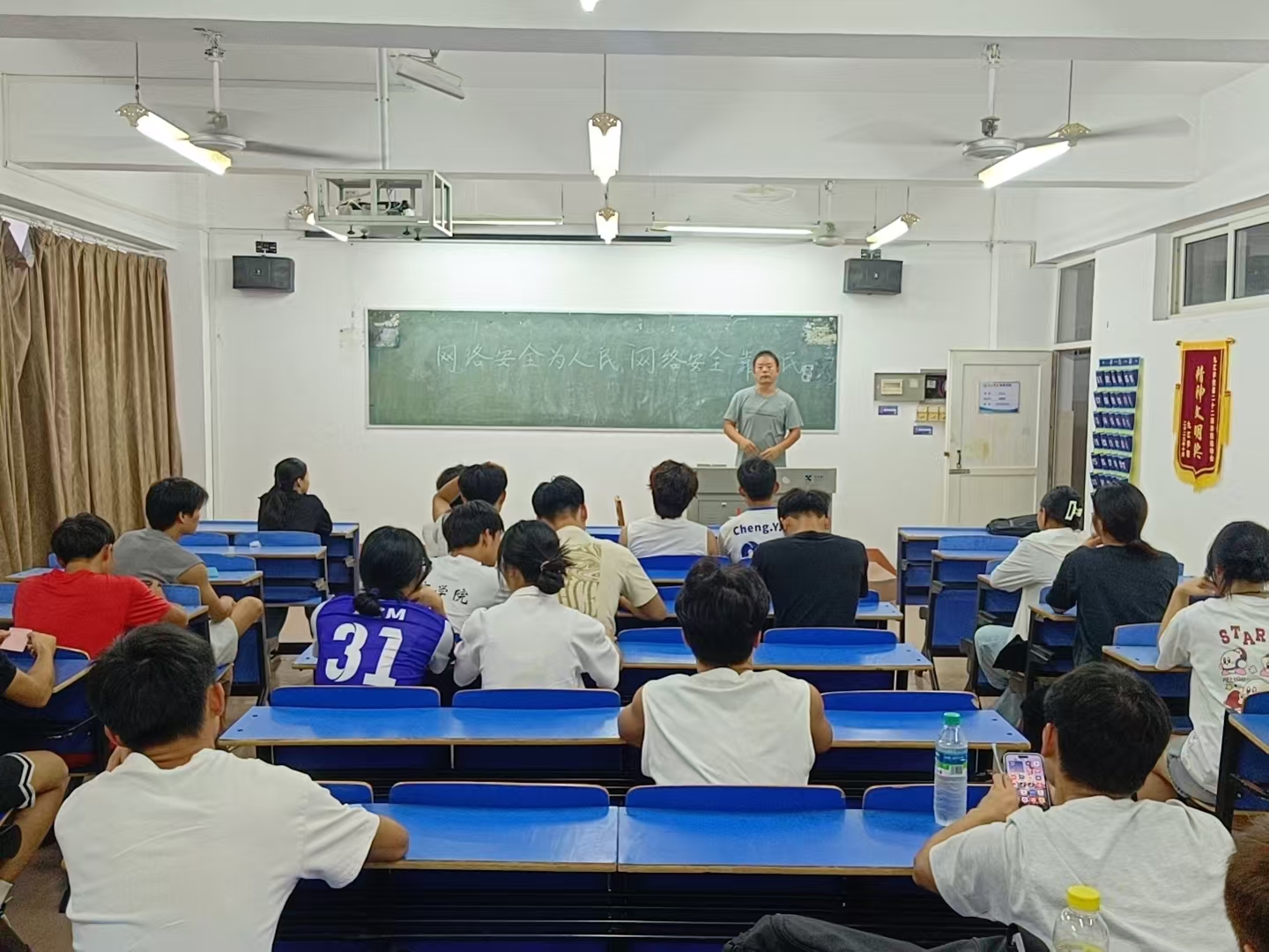 班会上,各班班主任组织学习网络安全手册,强调严禁网络“翻墙”行为,并进一步讲解了大学生常见网络诈骗的类型,引导同学们当遭受网络侵害行为发生时,可以运用法律武器,维护自身权益。同时教育同学们依法上网、文明上网,提高自律意识,自觉抵制网络上的不良信息,不在网络上发布虚假信息、不对他人进行网络暴力,积极举报网络违法违规行为,成为网络安全的建设者。