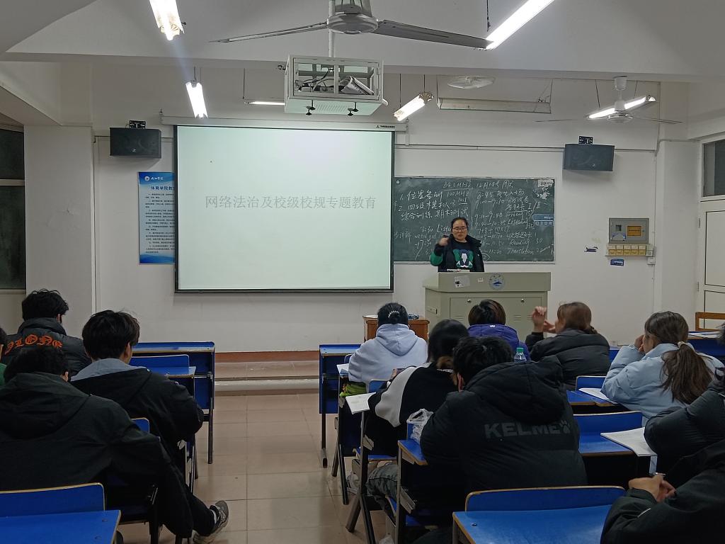 同学们积极参与讨论,表示将严格恪守网络法规与校纪校规,杜绝不良行为,立志成为文明守法的新时代大学生。此次专题教育有效加深了学生对网络法制和校级校规的理解,显著提升了他们的法治意识与自我保护能力,为营造优良校园秩序奠定了坚实基础。