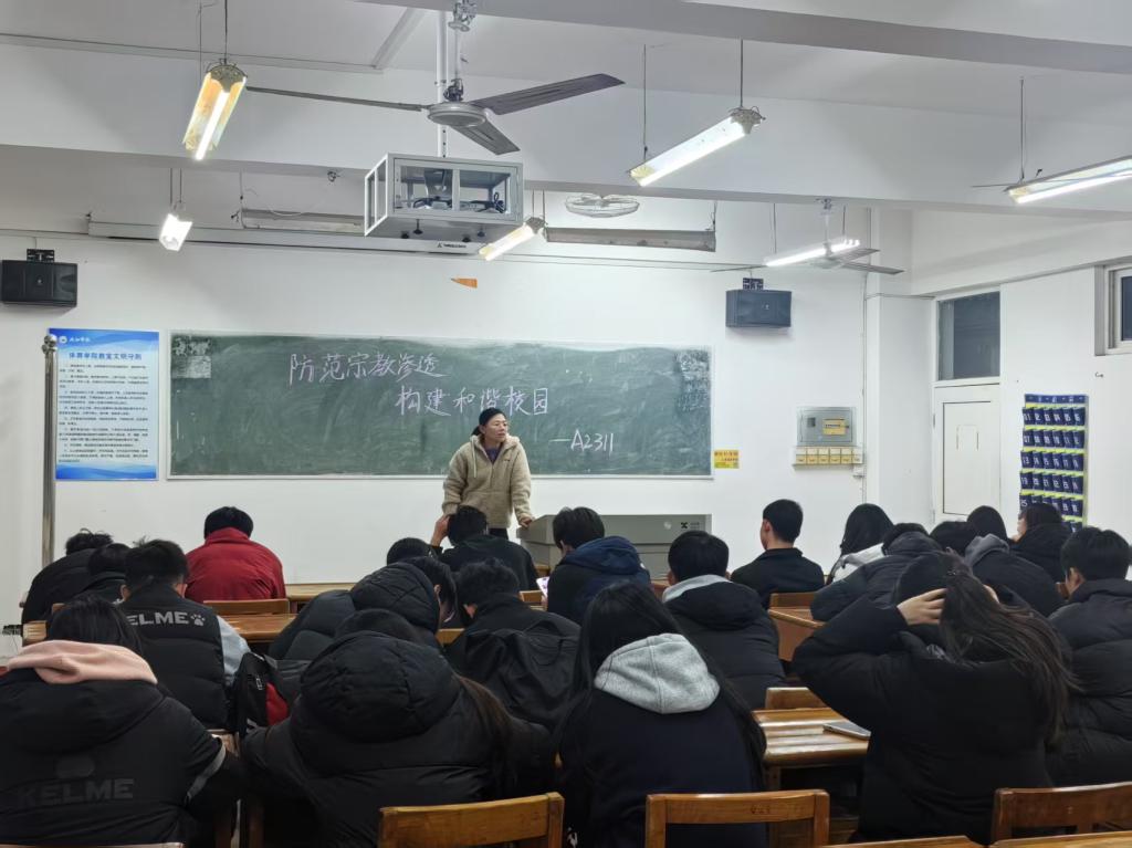 为教育引导大学生正确认识和对待宗教问题,筑牢抵御和防范宗教向校园渗透的思想防线,切实维护校园和谐稳定。3月30日,2026世界杯官网组织各班召开“防范宗教渗透,构建和谐校园”主题班会。