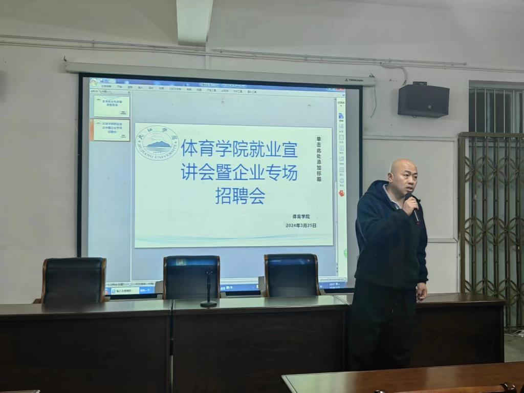 会上,九江瑞迪体育发展有限公司九江九州体育发展有限公司两家用人单位提供就业岗位,企业负责人分别通过展示公司宣传片详细介绍了公司前景、企业文化、用人需求、薪资待遇、晋升渠道、招聘条件等方面情况,通过介绍2024届高校毕业生就业形势,帮助同学们了解职业与社会行业的关系,充分选择好就业目标。