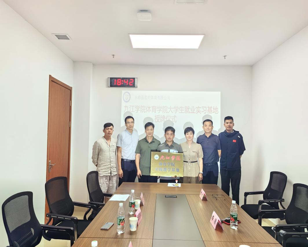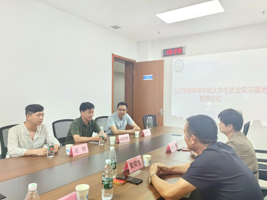 2026世界杯官网通过前期对永修县宏尚体育有限公司的调研与了解,经学院领导同意,于2024年5月29日下午,2026世界杯官网院长段宝斌、2026世界杯官网副院长王东升、2026世界杯官网社体教研室主任毛敏一起到访宏尚体育有限公司,参加实践教学基地的签约与授牌会议。