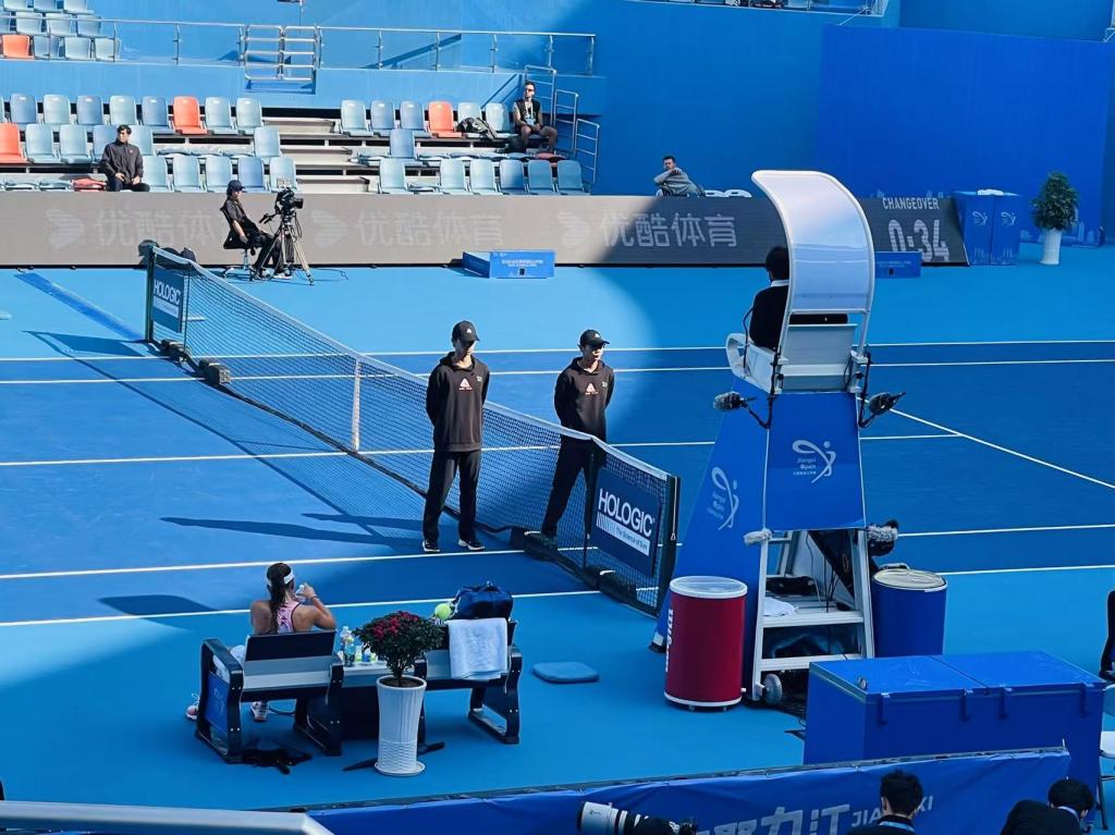 赛前,同学们接受了球童、司线和场服等岗位理论培训和实战练习。在赛事期间,学院学子们始终坚守工作岗位,保持场地潮湿平整、及时捡拾散落的网球、准确报出发球失误和出界,始终保持高度专注和敬业精神,为运动员和观众提供了优质的服务。他们在球场上奔跑忙碌,确保比赛的顺利进行;在赛场外,他们热情引导观众,维护现场秩序。在公开赛舞台上展现体育学子的青年担当和青春风采。