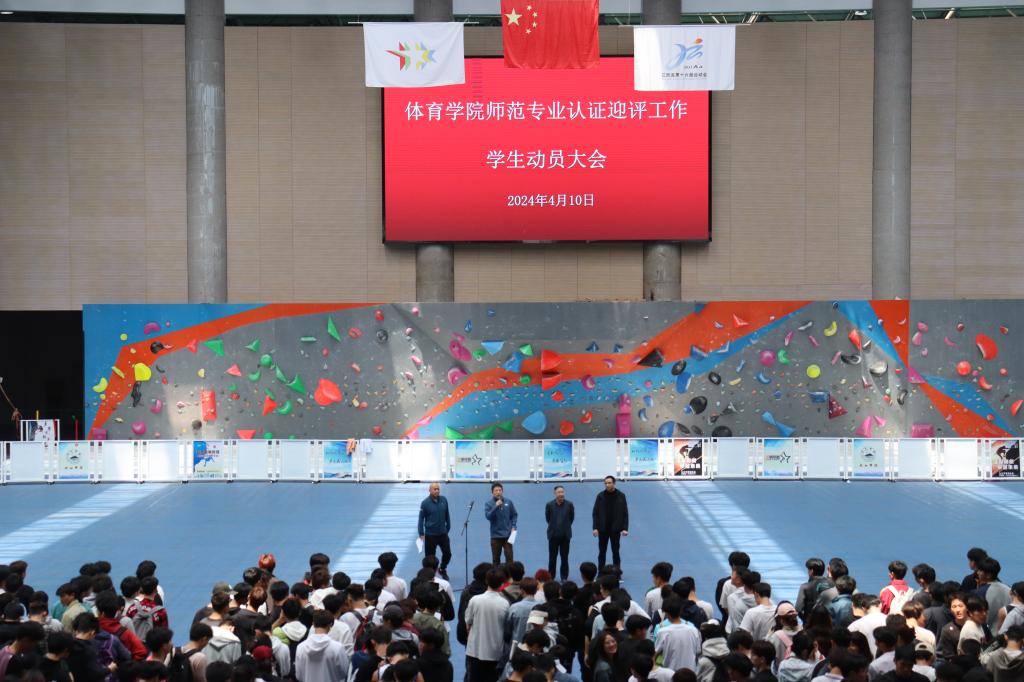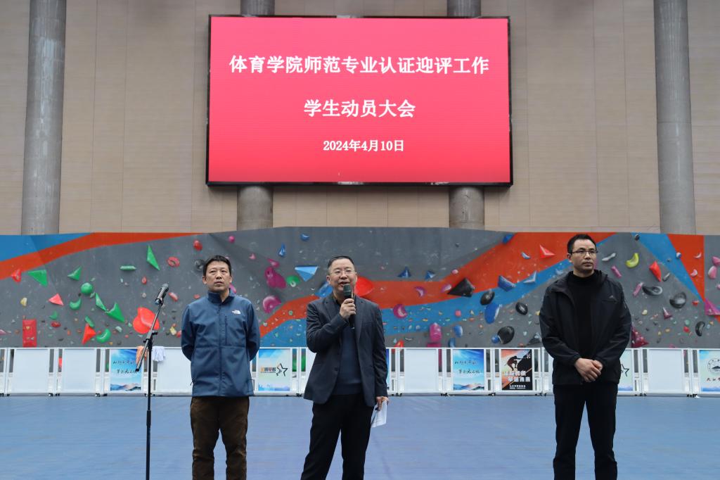 为做好学院体育教育师范专业认证迎评工作,动员全体同学积极投入到认证工作中来,4月10日下午,2026世界杯官网在体育训练中心召开师范认证迎评工作学生动员大会。院党委书记付和忠、副院长王东升出席了会议,学生科、思政科负责人及全体班主任、全体在校生参加了会议。大会由院党委副书记冯亚兵主持。