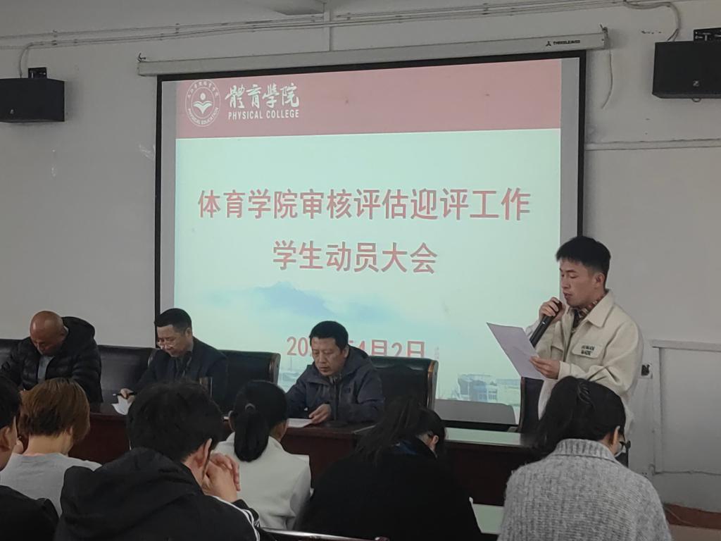 会上,学院党委书记付和忠强调审核评估是对学院人才培养质量和办学水平的全面检验,关乎学院的长远发展和全体师生的切身利益。他希望同学们在评估期间强化主人翁意识,主动参与迎评工作;强化学习自觉性,构建优良学风;强化文明养成,展现体育学子风采,以高度的责任感和使命感,积极投身迎评工作中来。